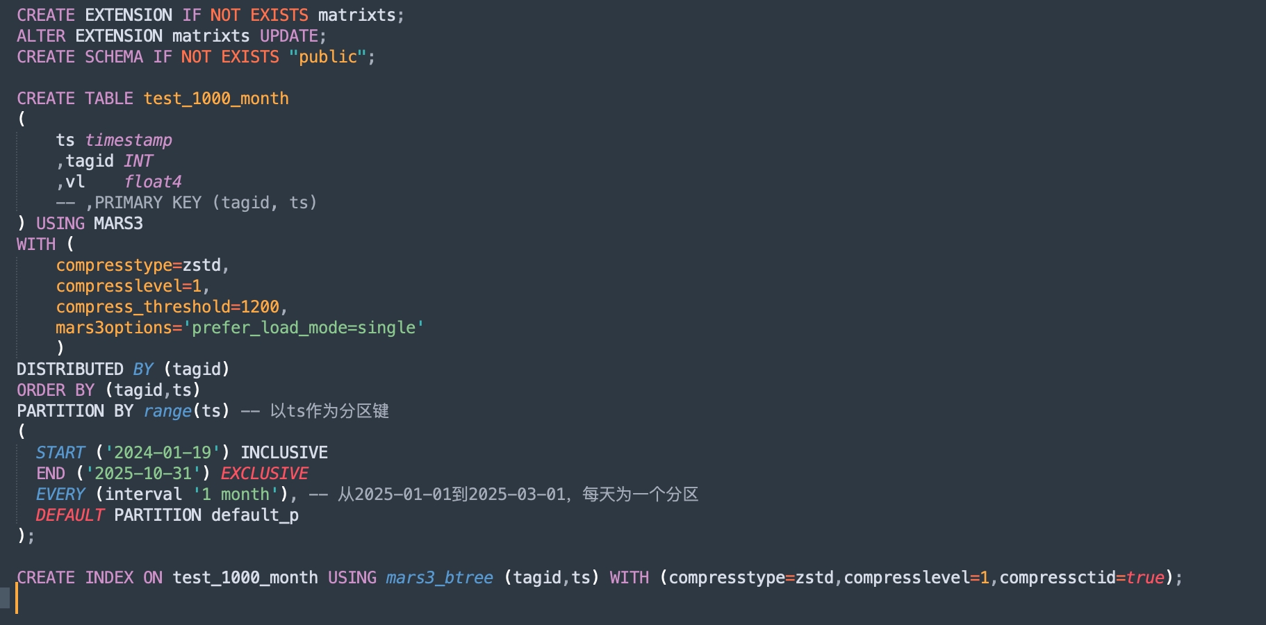 lz4、zstd、zlib 三种通用压缩算法需要在建表时用 WITH 语句中实现,示例如下:
