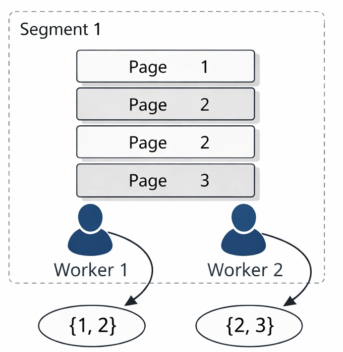 假设有两个进程参与扫描,worker1 扫描到了 1 和 2 数据,worker 2 扫描到了 2 和 3 数据,这种场景下,就不能确保同一个值 (此例中的 2) 只由一个 worker 独占输出,所以为了确保结果的一致性和正确性,就必须把这些分散的中间结果重新汇集、重新分配,再继续后续计算,于是数据库将 2 的结果再次传输到一个数据节点上进行运算。不难想象,假如需要传输几万条甚至上百万千万的量级,这种“数据搬家”的代价会极其可观,也会让整条执行路径变得更长、更复杂。