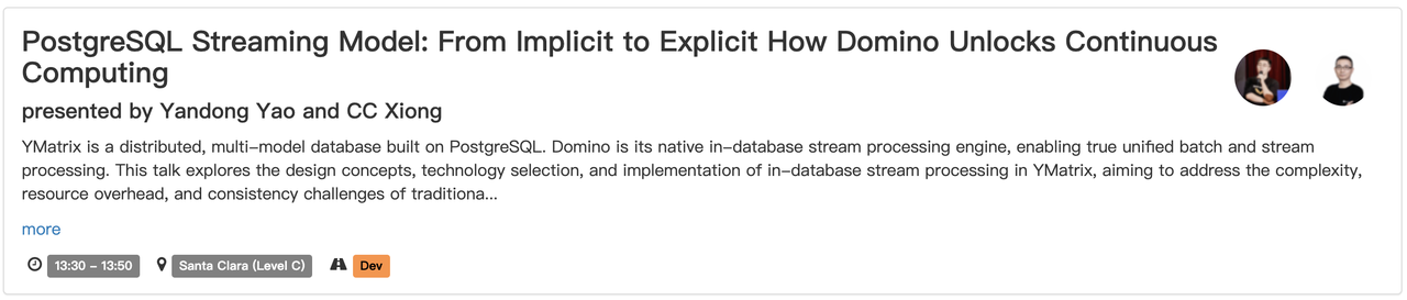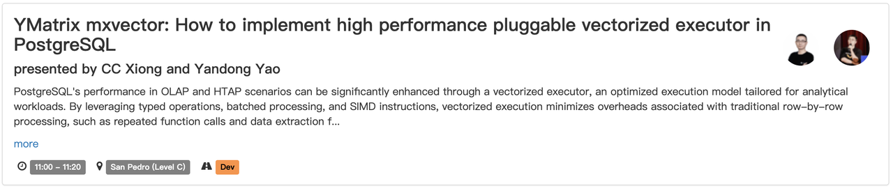 在本届大会上,YMatrix 将带来两场核心技术分享,围绕高性能执行引擎与流处理架构,展示面向 AI 时代的数据基础设施创新路径。