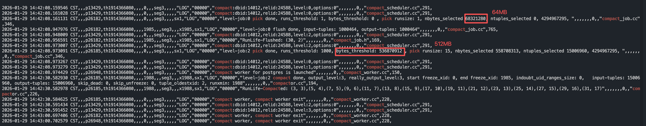 Compaction worker выполняет конкретные запросы на компактизацию, одновременно обнаруживая превышение коэффициента увеличения чтения на уровне и уведомляя планировщик о новом запросе. На данный момент, в связи с ограничениями модели процессов, максимальное количество рабочих процессов компактизации зафиксировано в коде — 16 штук.