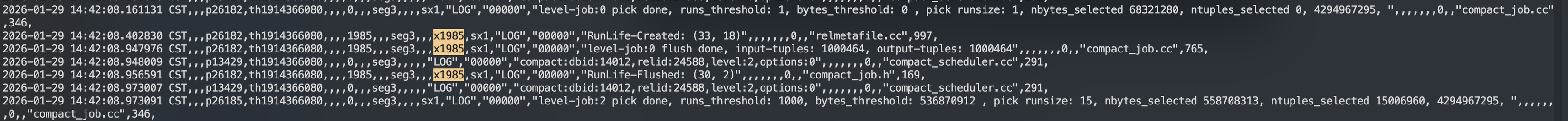 Кроме того, RUN в MARS3 имеет колоночную структуру, которая требует достаточной физической непрерывности для обеспечения пропускной способности сканирования и эффективности сжатия — это конфликтует с мелкозернистыми SST, обычно используемыми в Leveled Compaction. Size-Tiered Compaction лучше подходит под эту нагрузку: она основана на объединении run одинакового размера, значительно снижает write amplification и естественным образом формирует организацию run, сгруппированных по времени в потоке данных с прогрессирующим временем, что делает фильтрацию и пропуск данных по временным условиям более эффективными.